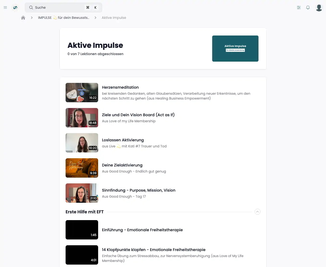 Regelmäßig neue Impulse und Goldnuggets aus Live MIT KATI und den anderen Kursen und Programmen wie z.B. das Love of my Life Mentoring.