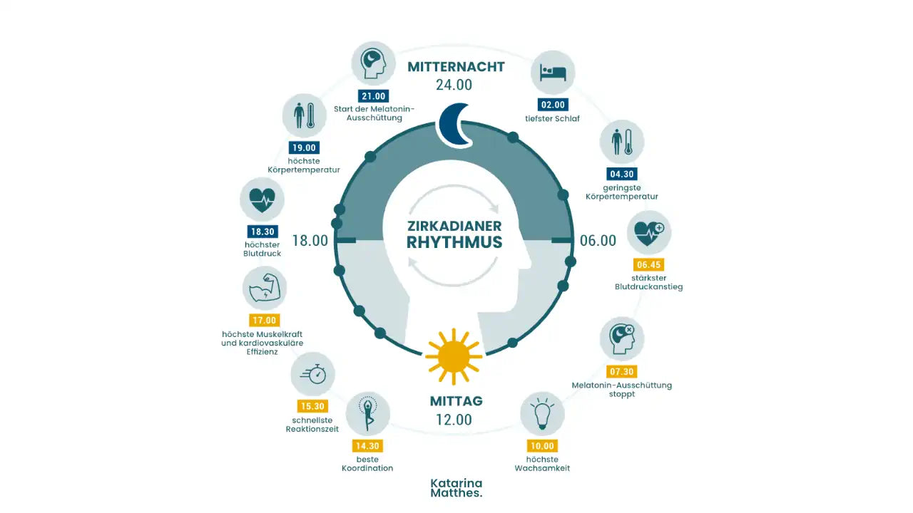 Unser gesamter Körper folgt dem zirkadianen Rhythmus – einem natürlichen 24h-Zyklus, der durch Licht, Temperatur und die Zeitzone gesteuert wird. Parallel dazu läuft in dir die Organuhr: Jedes Organ hat ein festes 2-Stunden-Zeitfenster, in dem es auf Hochtouren arbeitet. Wird diese Ordnung gestört, geraten Prozesse wie Hormonproduktion, Zellregeneration oder Verdauung durcheinander.